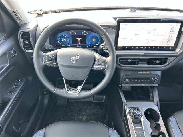 This vehicle includes the following features and options: Equipment Group 300A, Outer Banks Tech Package+ (B&O Sound System by Bang & Olufsen, Connected Navigation, and HD Radio), Sasquatch Outer Banks Package (110V/400W AC Power Outlet, 2nd Row Carpeted Seatback, Auxiliary Switches & Wiring, Brush Guard, Class II Trailer Tow Pack w/Trailer Sway Control, Fender Tie Downs, Front & Rear Black Bumpers, High Clearance Fender Flares, HOSS 2.0 Off-Road Suspension, Interior Grab Handle, Recovery Hooks, Trail Control for Off-Road, and Wheels: 17 Ebony Black-Painted Aluminum), 360-Degree Camera w/Trail & Split View, 4-Wheel Disc Brakes, 6 Speakers, ABS brakes, Air Conditioning, Alloy wheels, AM/FM radio: SiriusXM, AM/FM Stereo, Auto High-beam Headlights, Auto-dimming Rear-View mirror, Automatic temperature control, Brake assist, Compass, Delay-off headlights, Driver door bin, Driver vanity mirror, Dual front impact airbags, Dual front side impact airbags, Electronic Stability Control, Emergency communication system: SYNC 4 911 Assist, Four wheel independent suspension, Front anti-roll bar, Front Bucket Seats, Front Center Armrest, Front Driver/Passenger Seat Back Map Pockets, Front dual zone A/C, Front fog lights, Front Parking Sensors, Front reading lights, Fully automatic headlights, Garage door transmitter, Heated door mirrors, Heated front seats, Heated steering wheel, Illuminated entry, Knee airbag, Low tire pressure warning, Memory seat, Occupant sensing airbag, Outside temperature display, Overhead airbag, Overhead console, Panic alarm, Passenger door bin, Passenger vanity mirror, Power door mirrors, Power driver seat, Power passenger seat, Power steering, Power windows, Premium Trimmed Front Bucket Seats w/Ebony/Roast, Radio data system, Rain sensing wipers, Rear anti-roll bar, Rear Parking Sensors, Rear reading lights, Rear seat center armrest, Rear window defroster, Rear window wiper, Remote keyless entry, Reverse Brake Assist, Security system, SiriusXM, Speed control, Speed-sensing steering, Speed-Sensitive Wipers, Split folding rear seat, Steering wheel mounted audio controls, SYNC 4 w/Enhanced Voice Recognition, Tachometer, Telescoping steering wheel, Tilt steering wheel, Traction control, Trip computer, Variably intermittent wipers, and Wheels: 18 Ebony Black-Painted Aluminum.