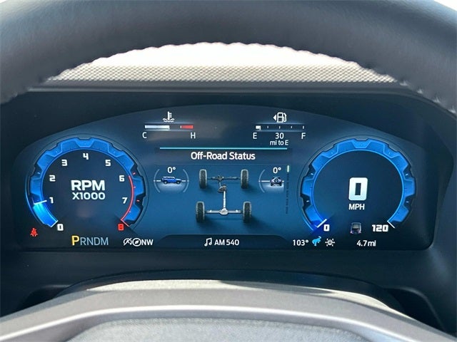 This vehicle includes the following features and options: Equipment Group 334A Lux Package (2-Door Intelligent Access w/Lock/Unlock, 360-Degree Camera, Adaptive Cruise Control, Ambient Footwell Lighting, Connected Navigation, Dr & Pass Illuminated Sliding Visor Vanity Mirrors, Dual Smart Charging USB Ports, Dual-Zone Electronic Automatic Temperature Control, Evasive Steering Assist, Front Parking Sensors, Front Row Heated Seats, Information on Demand Panel, Power Outlet - Back Side of Center Floor Console, Radio: B&O Sound System by Bang & Olufsen, Rear Parking Sensors, Sideview Mirrors, and Universal Garage Door Opener), 4-Wheel Disc Brakes, 4.7 Axle Ratio, 7 Speakers, ABS brakes, Air Conditioning, Alloy wheels, AM/FM radio: SiriusXM with 360L, AM/FM Stereo, Auto High-Beam Headlamps, Auto High-beam Headlights, Auto-dimming Rear-View mirror, BLIS Blind Spot Information System, Brake assist, Compass, Convertible HardTop, Convertible roof lining, Delay-off headlights, Door Storage Bags, Driver door bin, Driver vanity mirror, Dual front impact airbags, Dual front side impact airbags, Electronic Stability Control, Emergency communication system: 911 Assist, Exterior Parking Camera Rear, Ford Performance Heavy-Duty Modular Front Bumper, Front anti-roll bar, Front Bucket Seats, Front Center Armrest, Front fog lights, Front reading lights, Front wheel independent suspension, Fully automatic headlights, Glass rear window, Heated door mirrors, Heated steering wheel, Illuminated entry, Integrated roll-over protection, Internet access capable: FordPass Connect, Lane-Keeping System, Leather Shift Knob, Low tire pressure warning, Marine Grade Vinyl Heated Bucket Seats, Occupant sensing airbag, Outside temperature display, Overhead airbag, Overhead console, Panic alarm, Passenger door bin, Passenger vanity mirror, Power door mirrors, Power steering, Power windows, Pre-Collision Assist w/Automatic Emergency Braking, Radio data system, Rear window defroster, Rear window wiper, Rear-View Camera, Remote keyless entry, Security system, SiriusXM w/360L, Speed control, Split folding rear seat, Steering wheel mounted audio controls, SYNC 4, Tachometer, Telescoping steering wheel, Tilt steering wheel, Traction control, Trip computer, Variably intermittent wipers, Voltmeter, and Wheels: 17 Carbonized Gray-Painted Aluminum.