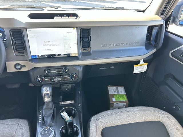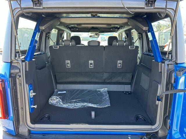 This vehicle includes the following features and options: Equipment Group 222A Mid Package (2-Door Intelligent Access w/Lock/Unlock, Ambient Footwell Lighting, Connected Navigation, Dr & Pass Illuminated Sliding Visor Vanity Mirrors, Dual Smart Charging USB Ports, Dual-Zone Electronic Automatic Temperature Control, Front Row Heated Seats, Power Outlet - Back Side of Center Floor Console, and Rear Parking Sensors), 4-Wheel Disc Brakes, 4.46 Axle Ratio, 7 Speakers, ABS brakes, Air Conditioning, Alloy wheels, AM/FM radio: SiriusXM with 360L, AM/FM Stereo, Auto High-Beam Headlamps, Auto High-beam Headlights, BLIS Blind Spot Information System, Brake assist, Carbonized Gray Molded-In-Color Hard Top, Cloth Bucket Seats, Compass, Delay-off headlights, Driver door bin, Driver vanity mirror, Dual front impact airbags, Dual front side impact airbags, Electronic Stability Control, Emergency communication system: 911 Assist, Exterior Parking Camera Rear, Front anti-roll bar, Front Bucket Seats, Front Center Armrest, Front reading lights, Front wheel independent suspension, Fully automatic headlights, Heated door mirrors, Illuminated entry, Integrated roll-over protection, Internet access capable: FordPass Connect, Lane-Keeping System, Leather Shift Knob, Low tire pressure warning, Occupant sensing airbag, Outside temperature display, Overhead airbag, Overhead console, Panic alarm, Passenger door bin, Passenger vanity mirror, Power door mirrors, Power steering, Power windows, Pre-Collision Assist w/Automatic Emergency Braking, Radio data system, Rear-View Camera, Rear-Window Defroster & Washer, Remote keyless entry, Security system, Side Step, SiriusXM w/360L, Speed control, Split folding rear seat, Steering wheel mounted audio controls, SYNC 4, Tachometer, Telescoping steering wheel, Tilt steering wheel, Traction control, Trip computer, Variably intermittent wipers, and Wheels: 17 Carbonized Gray-Painted Aluminum.