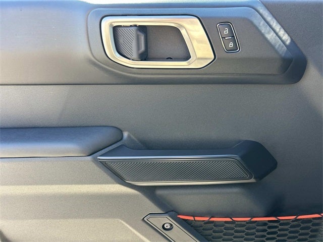 This vehicle includes the following features and options: Equipment Group 374A Lux Package, 12 Speakers, 4-Wheel Disc Brakes, ABS brakes, Air Conditioning, Alloy wheels, AM/FM radio: SiriusXM with 360L, Auto High-beam Headlights, Auto-dimming Rear-View mirror, Automatic temperature control, Brake assist, Compass, Connected Navigation, Convertible HardTop, Convertible roof lining, Delay-off headlights, Driver door bin, Driver vanity mirror, Dual front impact airbags, Dual front side impact airbags, Electronic Stability Control, Emergency communication system: 911 Assist, Engine Block Heater, Exterior Parking Camera Rear, Front anti-roll bar, Front Bucket Seats, Front Center Armrest, Front dual zone A/C, Front fog lights, Front reading lights, Front wheel independent suspension, Fully automatic headlights, Garage door transmitter, Glass rear window, Hard Top Sound Deadening Headliner, Heated door mirrors, Heated front seats, Heated steering wheel, Illuminated entry, Integrated roll-over protection, Internet access capable: FordPass Connect, Leather Shift Knob, Low tire pressure warning, Marine Grade Vinyl Bucket Seats, Navigation system: Connected Navigation, Occupant sensing airbag, Outside temperature display, Overhead airbag, Overhead console, Panic alarm, Passenger door bin, Passenger vanity mirror, Power door mirrors, Power steering, Power windows, Radio data system, Radio: B&O Sound System by Bang & Olufsen, Raptor Graphic, Rear anti-roll bar, Rear seat center armrest, Rear window defroster, Rear window wiper, Rear-Window Defroster & Washer, Remote keyless entry, Security system, Shadow Black Painted Hard Top, SiriusXM w/360L, Speed control, Split folding rear seat, Steering wheel mounted audio controls, SYNC 4, Tachometer, Telescoping steering wheel, Tilt steering wheel, Traction control, Trip computer, Turn signal indicator mirrors, Variably intermittent wipers, Voltmeter, and Wheels: 17 Black High Gloss-Painted Aluminum.