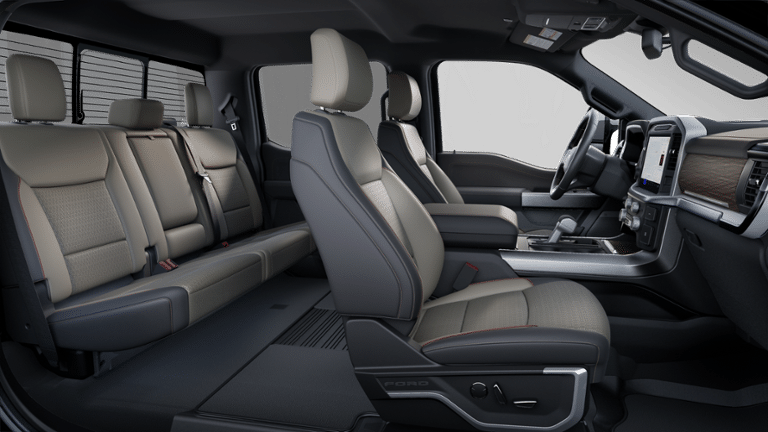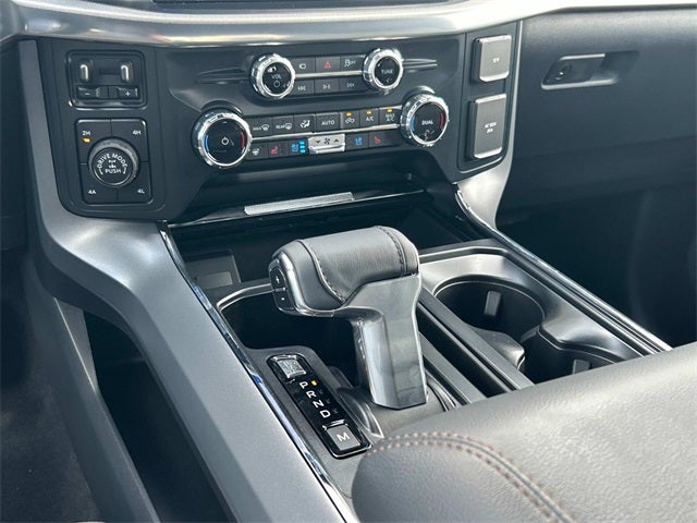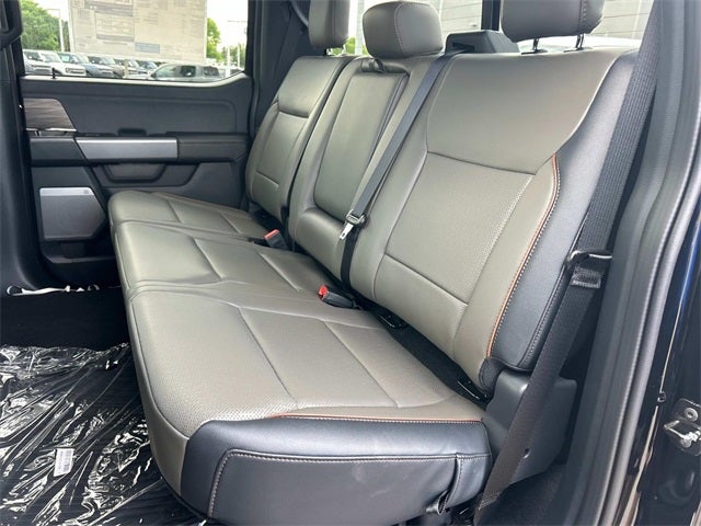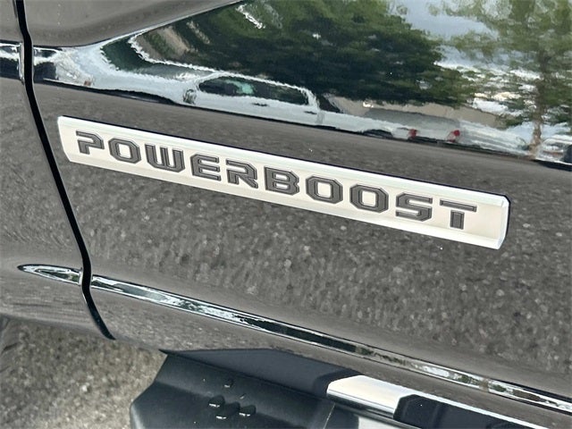 This vehicle includes the following features and options: Equipment Group 501A Mid (Wheels: 20 Chrome-Like PVD), FX4 Off-Road Package (4x4 FX4 Off-Road Bodyside Decal, Hill Descent Control, Monotube Rear Shocks, Off-Road Tuned Front Shock Absorbers, Rock Crawl Mode, and Tray Style Floor Liner w/o Carpet Mats), Tow/Haul Package, 3.5L PowerBoost Full-Hybrid V6, 4WD, 4-Wheel Disc Brakes, 8 Speakers, ABS brakes, ActiveX Trimmed Bucket Seats, Adjustable pedals, Air Conditioning, Alloy wheels, AM/FM radio: SiriusXM with 360L, Auto High-beam Headlights, Auto-dimming door mirrors, Auto-dimming Rear-View mirror, Automatic temperature control, Brake assist, Bumpers: chrome, Chrome wheels, Compass, Delay-off headlights, Driver door bin, Driver vanity mirror, Dual front impact airbags, Dual front side impact airbags, Electronic Stability Control, Emergency communication system: SYNC 4 911 Assist, Front anti-roll bar, Front Bucket Seats, Front Center Armrest, Front dual zone A/C, Front fog lights, Front License Plate Bracket, Front reading lights, Front wheel independent suspension, Fully automatic headlights, Garage door transmitter, Heated door mirrors, Heated front seats, Heated steering wheel, Illuminated entry, Low tire pressure warning, Memory seat, Navigation system: Connected Navigation, Occupant sensing airbag, Outside temperature display, Overhead airbag, Overhead console, Panic alarm, Passenger door bin, Passenger vanity mirror, Pedal memory, Power door mirrors, Power driver seat, Power passenger seat, Power steering, Power Telescoping/Glass/Folding Trailer Tow Mirrors, Power windows, Radio data system, Radio: B&O Sound System by Bang & Olufsen, Rain sensing wipers, Rear reading lights, Rear seat center armrest, Rear step bumper, Rear window defroster, Remote keyless entry, Security system, Speed control, Split folding rear seat, Steering wheel mounted audio controls, SYNC 4 w/Enhanced Voice Recognition, Tachometer, Telescoping steering wheel, Tilt steering wheel, Traction control, Trip computer, Turn signal indicator mirrors, Variably intermittent wipers, Ventilated front seats, Voltmeter, and Wheels: 18 Chrome-Like PVD.