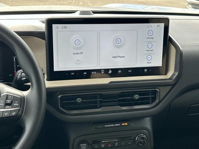 This vehicle includes the following features and options: Black Diamond Off-Road Package (400W Pro Power Onboard, Auxiliary Switches and Wiring, Front Black Molded-in-Color (MIC) Bumper, Front Brush Guard, and Wheels: 17 Carbonized Gray-Painted Aluminum), Class II Trailer Tow Package with Trailer Sway Control, Equipment Group 200A Standard Package (AM/FM Stereo, Cloth with Easy-to-Clean Front Bucket Seats, SiriusXM with 360L, SYNC 4 with Enhanced Voice Recognition, and Wheels: 17 Carbonized Gray Painted Aluminum), Ford Connectivity Package (1-Year Included), Internet access capable: 5G Modem - Ford Connectivity Package, 4-Wheel Disc Brakes, 6 Speakers, ABS brakes, Air Conditioning, Alloy wheels, AM/FM radio: SiriusXM with 360L, Apple CarPlay/Android Auto, Auto High-beam Headlights, Automatic temperature control, Brake assist, Compass, Delay-off headlights, Driver door bin, Driver vanity mirror, Dual front impact airbags, Dual front side impact airbags, Electronic Stability Control, Emergency communication system: SYNC 4 911 Assist, Exterior Parking Camera Rear, Four wheel independent suspension, Front anti-roll bar, Front Bucket Seats, Front Center Armrest, Front License Plate Bracket, Front reading lights, Fully automatic headlights, Heated door mirrors, Illuminated entry, Knee airbag, Low tire pressure warning, Occupant sensing airbag, Outside temperature display, Overhead airbag, Overhead console, Panic alarm, Passenger door bin, Passenger vanity mirror, Power door mirrors, Power steering, Power windows, Radio data system, Rear anti-roll bar, Rear Parking Sensors, Rear reading lights, Rear seat center armrest, Rear window defroster, Rear window wiper, Remote keyless entry, Security system, Speed control, Speed-sensing steering, Speed-Sensitive Wipers, Split folding rear seat, Steering wheel mounted audio controls, Tachometer, Telescoping steering wheel, Tilt steering wheel, Traction control, Trip computer, and Variably intermittent wipers.