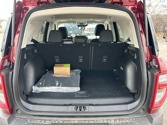 This vehicle includes the following features and options: Black Diamond Off-Road Package (400W Pro Power Onboard, Auxiliary Switches and Wiring, Front Black Molded-in-Color (MIC) Bumper, Front Brush Guard, and Wheels: 17 Carbonized Gray-Painted Aluminum), Class II Trailer Tow Package with Trailer Sway Control, Convenience Package (Front Driver/Passenger Seat Back Map Pockets, Heated 8-Way Power Driver's Seat, LED Fog Lamps, and Premium Wrapped Steering Wheel), Equipment Group 200A Standard Package (AM/FM Stereo, Cloth with Easy-to-Clean Front Bucket Seats, SiriusXM with 360L, SYNC 4 with Enhanced Voice Recognition, and Wheels: 17 Carbonized Gray Painted Aluminum), Ford Connectivity Package (1-Year Included), Internet access capable: 5G Modem - Ford Connectivity Package, 4-Wheel Disc Brakes, 6 Speakers, ABS brakes, Air Conditioning, Alloy wheels, AM/FM radio: SiriusXM with 360L, Apple CarPlay/Android Auto, Auto High-beam Headlights, Automatic temperature control, Brake assist, Compass, Delay-off headlights, Driver door bin, Driver vanity mirror, Dual front impact airbags, Dual front side impact airbags, Electronic Stability Control, Emergency communication system: SYNC 4 911 Assist, Exterior Parking Camera Rear, First Aid Kit, Four wheel independent suspension, Front anti-roll bar, Front Bucket Seats, Front Center Armrest, Front License Plate Bracket, Front reading lights, Fully automatic headlights, Heated door mirrors, Illuminated entry, Knee airbag, Liftgate with Black BRONCO SPORT Lettering, Low tire pressure warning, Occupant sensing airbag, Outside temperature display, Overhead airbag, Overhead console, Panic alarm, Passenger door bin, Passenger vanity mirror, Power door mirrors, Power Moonroof, Power steering, Power windows, Radio data system, Rear anti-roll bar, Rear Parking Sensors, Rear reading lights, Rear seat center armrest, Rear window defroster, Rear window wiper, Remote keyless entry, Security system, Speed control, Speed-sensing steering, Speed-Sensitive Wipers, Split folding rear seat, Steering wheel mounted audio controls, Tachometer, Telescoping steering wheel, Tilt steering wheel, Traction control, Trip computer, and Variably intermittent wipers.