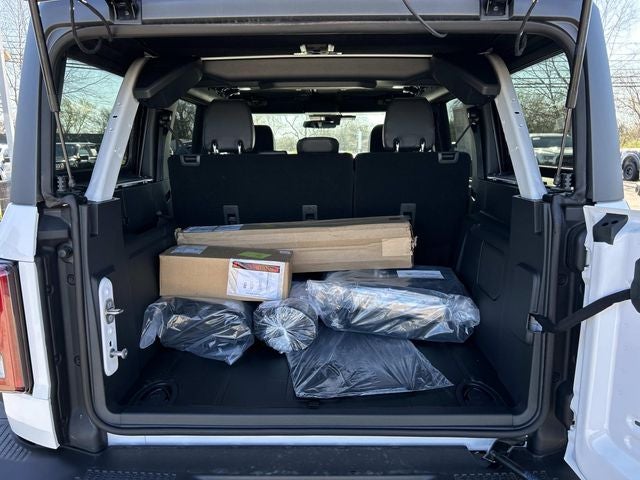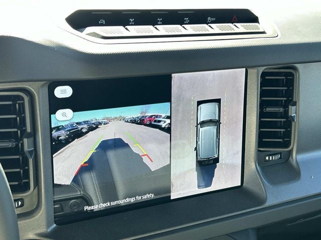 This vehicle includes the following features and options: Equipment Group 334A Lux Package (2-Door Intelligent Access with Lock/Unlock, 360-Degree Camera, Adaptive Cruise Control, Ambient Footwell Lighting, Connected Navigation, Driver and Front Passenger Illuminated Sliding Visor Vanity Mirrors, Dual Smart Charging USB Ports, Dual-Zone Electronic Automatic Temperature Control, Evasive Steering Assist, Front Parking Sensors, Front Row Heated Seats, Heated Steering Wheel, Information on Demand Panel, Marine Grade Vinyl Heated Bucket Seats, Pro Power Onboard - 400W, Rear Parking Sensors, Sideview Mirrors, and Wheels: 17 Carbonized Gray-Painted Aluminum), Ford Connectivity Package (1-Year Included), Sasquatch Package (Front Stabilizer Disconnect, High Clearance Suspension, and Position-Sensitive Bilstein Shock Absorbers), 4-Wheel Disc Brakes, 7 Speakers, ABS brakes, Air Conditioning, Alloy wheels, AM/FM radio: SiriusXM with 360L, AM/FM Stereo, Auto High-Beam Headlamps, Auto High-beam Headlights, Auto-dimming Rear-View mirror, BLIS Blind Spot Information System, Brake assist, Carbonized Gray Molded-in-Color Hard Top, Compass, Delay-off headlights, Driver door bin, Driver vanity mirror, Dual front impact airbags, Dual front side impact airbags, Electronic Stability Control, Emergency communication system: 911 Assist, Exterior Parking Camera Rear, Front anti-roll bar, Front Bucket Seats, Front Center Armrest, Front fog lights, Front reading lights, Front Row Top Panels and Door Storage Bags, Front wheel independent suspension, Fully automatic headlights, Hard Top Sound Deadening Headliner, Heated door mirrors, Heated front seats, Illuminated entry, Integrated roll-over protection, Lane-Keeping System, Leather Shift Knob, Low tire pressure warning, Occupant sensing airbag, Outside temperature display, Overhead airbag, Overhead console, Panic alarm, Passenger door bin, Passenger vanity mirror, Power door mirrors, Power steering, Power windows, Pre-Collision Assist with Automatic Emergency Braking, Radio data system, Raptor-Style Running Board, Rear-View Camera, Rear-Window Defroster and Washer, Remote keyless entry, Security system, SiriusXM with 360L, Speed control, Split folding rear seat, Steering wheel mounted audio controls, SYNC 4, Tachometer, Telescoping steering wheel, Tilt steering wheel, Traction control, Trip computer, Variably intermittent wipers, and Voltmeter.