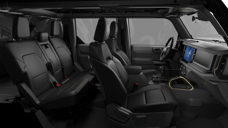 This vehicle includes the following features and options: Equipment Group 332A Mid Package (2-Door Intelligent Access with Lock/Unlock, AM/FM Stereo, Ambient Footwell Lighting, Connected Navigation, Driver and Front Passenger Illuminated Sliding Visor Vanity Mirrors, Dual Smart Charging USB Ports, Dual-Zone Electronic Automatic Temperature Control, Front Row Heated Seats, Heated Steering Wheel, Marine Grade Vinyl Heated Bucket Seats, Pro Power Onboard - 400W, Rear Parking Sensors, SiriusXM with 360L, SYNC 4, and Wheels: 17 Carbonized Gray-Painted Aluminum), Ford Connectivity Package (1-Year Included), Sasquatch Package (Front Stabilizer Disconnect, High Clearance Suspension, and Position-Sensitive Bilstein Shock Absorbers), 4-Wheel Disc Brakes, 7 Speakers, ABS brakes, Air Conditioning, Alloy wheels, AM/FM radio: SiriusXM with 360L, Auto High-Beam Headlamps, Auto High-beam Headlights, Auto-dimming Rear-View mirror, BLIS Blind Spot Information System, Brake assist, Carbonized Gray Molded-in-Color Hard Top, Compass, Delay-off headlights, Driver door bin, Driver vanity mirror, Dual front impact airbags, Dual front side impact airbags, Electronic Stability Control, Emergency communication system: 911 Assist, Exterior Parking Camera Rear, Front anti-roll bar, Front Bucket Seats, Front Center Armrest, Front fog lights, Front reading lights, Front wheel independent suspension, Fully automatic headlights, Heated door mirrors, Heated front seats, Illuminated entry, Integrated roll-over protection, Lane-Keeping System, Leather Shift Knob, Low tire pressure warning, Occupant sensing airbag, Outside temperature display, Overhead airbag, Overhead console, Panic alarm, Passenger door bin, Passenger vanity mirror, Power door mirrors, Power steering, Power windows, Pre-Collision Assist with Automatic Emergency Braking, Radio data system, Rear-View Camera, Rear-Window Defroster and Washer, Remote keyless entry, Security system, Speed control, Split folding rear seat, Steering wheel mounted audio controls, Tachometer, Telescoping steering wheel, Tilt steering wheel, Traction control, Trip computer, Variably intermittent wipers, Voltmeter, and Wheels: 17 Black High Gloss-Painted Aluminum.