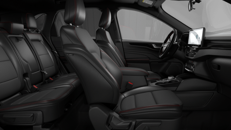 This vehicle includes the following features and options: Equipment Group 300A (3.81 Axle Ratio, 4-Way Manual Front Passenger Seat, 8-Way Power Driver Seat, Ford App, Partial Vinyl/Cloth Front Sport Contour Bucket Seats with Red Stitching, Radio: AM/FM Stereo with SiriusXM 360L, SYNC 4, and Wheels: 18 Rock Metallic Painted Aluminum), Tech Pack #1 (Adaptive Cruise Control with Stop-and-Go, Connected Navigation (1-Year Included), Digital Rear View Camera, Evasive Steering Assist, Ford Co-Pilot360 Assist+, Intersection Assist, Predictive Speed Assist, Rear Parking Sensor, and SYNC 4 with Enhanced Voice Recognition), 4-Wheel Disc Brakes, 6 Speakers, ABS brakes, Air Conditioning, Alloy wheels, AM/FM radio: SiriusXM 360L, Auto High-beam Headlights, Automatic temperature control, Brake assist, Bumpers: body-color, Compass, Delay-off headlights, Driver door bin, Driver vanity mirror, Dual front impact airbags, Dual front side impact airbags, Easy Access Cargo Shade, Electronic Stability Control, Emergency communication system: SYNC 4 911 Assist, Four wheel independent suspension, Front anti-roll bar, Front Bucket Seats, Front Center Armrest, Front dual zone A/C, Front License Plate Bracket, Front reading lights, Fully automatic headlights, Heated steering wheel, Illuminated entry, Knee airbag, Low tire pressure warning, Occupant sensing airbag, Outside temperature display, Overhead airbag, Overhead console, Panic alarm, Passenger door bin, Passenger vanity mirror, Power door mirrors, Power driver seat, Power steering, Power windows, Radio data system, Rear anti-roll bar, Rear reading lights, Rear seat center armrest, Rear window defroster, Rear window wiper, Remote keyless entry, Speed control, Speed-sensing steering, Speed-Sensitive Wipers, Split folding rear seat, Spoiler, Sport steering wheel, Steering wheel mounted audio controls, Tachometer, Telescoping steering wheel, Tilt steering wheel, Traction control, Trip computer, and Variably intermittent wipers.