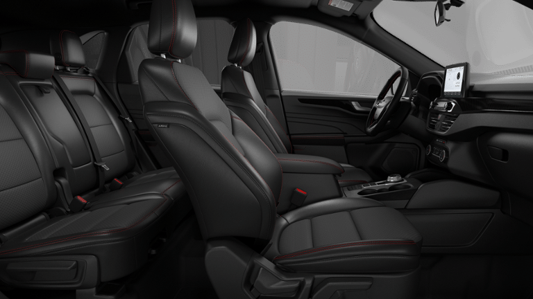 This vehicle includes the following features and options: Equipment Group 300A (3.81 Axle Ratio, 4-Way Manual Front Passenger Seat, 8-Way Power Driver Seat, Ford App, Partial Vinyl/Cloth Front Sport Contour Bucket Seats with Red Stitching, Radio: AM/FM Stereo with SiriusXM 360L, SYNC 4, and Wheels: 18 Rock Metallic Painted Aluminum), 4-Wheel Disc Brakes, 6 Speakers, ABS brakes, Air Conditioning, Alloy wheels, AM/FM radio: SiriusXM 360L, Auto High-beam Headlights, Automatic temperature control, Brake assist, Bumpers: body-color, Compass, Delay-off headlights, Driver door bin, Driver vanity mirror, Dual front impact airbags, Dual front side impact airbags, Electronic Stability Control, Emergency communication system: SYNC 4 911 Assist, Four wheel independent suspension, Front anti-roll bar, Front Bucket Seats, Front Center Armrest, Front dual zone A/C, Front License Plate Bracket, Front reading lights, Fully automatic headlights, Heated steering wheel, Illuminated entry, Knee airbag, Low tire pressure warning, Occupant sensing airbag, Outside temperature display, Overhead airbag, Overhead console, Panic alarm, Passenger door bin, Passenger vanity mirror, Power door mirrors, Power driver seat, Power steering, Power windows, Radio data system, Rear anti-roll bar, Rear reading lights, Rear seat center armrest, Rear window defroster, Rear window wiper, Remote keyless entry, Speed control, Speed-sensing steering, Speed-Sensitive Wipers, Split folding rear seat, Spoiler, Sport steering wheel, Steering wheel mounted audio controls, Tachometer, Telescoping steering wheel, Tilt steering wheel, Traction control, Trip computer, and Variably intermittent wipers.