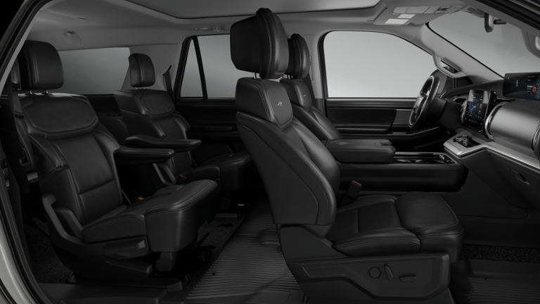 This vehicle includes the following features and options: Driver's Package (Radio: B&O Play Unleashed and SiriusXM with 360L), Equipment Group 600A Standard Package (2nd Row Power-Folding Captain's Chairs, 3.73 Axle Ratio, BlueCruise Equipped (90-Day Trial), Ford Digital Experience, Heated and Ventilated Leather Front Captain's Chairs, Power Tilt/Telescopic Steering Wheel with Memory, Radio: B&O Sound System by Bang and Olufsen, and Wheels: 20 x 8.5 Ebony Bright Machined Aluminum), Ford Connectivity Package (1-Year Included), 10 Speakers, 3rd row seats: split-bench, 4-Wheel Disc Brakes, ABS brakes, Air Conditioning, Alloy wheels, AM/FM radio: SiriusXM with 360L, Apple CarPlay/Android Auto, Auto High-beam Headlights, Auto-dimming door mirrors, Auto-dimming Rear-View mirror, Automatic temperature control, Black Onyx Painted Power Deployable Running Boards, Brake assist, Bumpers: body-color, Compass, Delay-off headlights, Driver door bin, Driver vanity mirror, Dual front impact airbags, Dual front side impact airbags, Electronic Stability Control, Emergency communication system: 911 Assist, Exterior Parking Camera Rear, Four wheel independent suspension, Front and 2nd Rows Floor Liners Without Carper Mats, Front anti-roll bar, Front Bucket Seats, Front Center Armrest, Front dual zone A/C, Front License Plate Bracket, Front reading lights, Fully automatic headlights, Garage door transmitter, Genuine wood dashboard insert, Genuine wood door panel insert, Heated door mirrors, Heated front seats, Heated rear seats, Heated steering wheel, Illuminated entry, Intersection Assist, Leather steering wheel, Low tire pressure warning, Memory seat, Navigation System, Occupant sensing airbag, Outside temperature display, Overhead airbag, Overhead console, Panic alarm, Passenger door bin, Passenger vanity mirror, Power door mirrors, Power driver seat, Power moonroof: Vista Roof, Power passenger seat, Power steering, Power windows, Radio data system, Rain sensing wipers, Rear air conditioning, Rear anti-roll bar, Rear reading lights, Rear window defroster, Rear window wiper, Reclining 3rd row seat, Remote keyless entry, Security system, Speed control, Speed-sensing steering, Speed-Sensitive Wipers, Split folding rear seat, Spoiler, Steering wheel memory, Steering wheel mounted audio controls, Tachometer, Telescoping steering wheel, Tilt steering wheel, Traction control, Trip computer, Turn signal indicator mirrors, Variably intermittent wipers, Ventilated front seats, Voltmeter, and Wheels: 22 x 9.0 Ebony Bright Machined Face Aluminum.