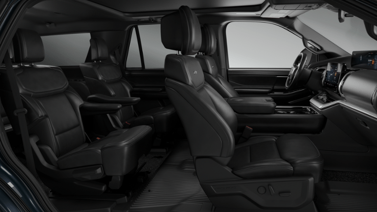 This vehicle includes the following features and options: Ford Connectivity Package (1-Year Included), Stealth Appearance Package (Black Belt Molding, Black Expedition Lettering on Hood, Black Headlamp Bezel with Ebony Trim Applique, Black Platinum Badge on Tailgate, Black Roof Rails, Carbon Black Front Bumper/Fascia, Rear Side Windows Laminated Glass, and Signature Grille Lighting), 4WD, 10 Speakers, 2nd Row Power-Folding Captain's Chairs, 3.73 Axle Ratio, 3rd row seats: split-bench, 4-Wheel Disc Brakes, ABS brakes, Air Conditioning, Alloy wheels, AM/FM radio: SiriusXM with 360L, Apple CarPlay/Android Auto, Auto High-beam Headlights, Auto-dimming door mirrors, Auto-dimming Rear-View mirror, Automatic temperature control, Brake assist, Bumpers: body-color, Compass, Delay-off headlights, Driver door bin, Driver vanity mirror, Dual front impact airbags, Dual front side impact airbags, Electronic Stability Control, Emergency communication system: 911 Assist, Exterior Parking Camera Rear, Ford Digital Experience, Four wheel independent suspension, Front and 2nd Rows Floor Liners Without Carper Mats, Front anti-roll bar, Front Bucket Seats, Front Center Armrest, Front dual zone A/C, Front License Plate Bracket, Front reading lights, Fully automatic headlights, Garage door transmitter, Genuine wood dashboard insert, Genuine wood door panel insert, Heated and Ventilated Leather Front Captain's Chairs, Heated door mirrors, Heated front seats, Heated rear seats, Heated steering wheel, Illuminated entry, Intersection Assist, Leather steering wheel, Low tire pressure warning, Memory seat, Navigation System, Occupant sensing airbag, Outside temperature display, Overhead airbag, Overhead console, Panic alarm, Passenger door bin, Passenger vanity mirror, Power door mirrors, Power driver seat, Power moonroof: Vista Roof, Power passenger seat, Power steering, Power windows, Radio data system, Radio: B&O Sound System by Bang and Olufsen, Rain sensing wipers, Rear air conditioning, Rear anti-roll bar, Rear reading lights, Rear window defroster, Rear window wiper, Reclining 3rd row seat, Remote keyless entry, Security system, SiriusXM with 360L, Speed control, Speed-sensing steering, Speed-Sensitive Wipers, Split folding rear seat, Spoiler, Steering wheel memory, Steering wheel mounted audio controls, Tachometer, Telescoping steering wheel, Tilt steering wheel, Traction control, Trip computer, Turn signal indicator mirrors, Variably intermittent wipers, Ventilated front seats, Voltmeter, Wheels: 20 x 8.5 Ebony Bright Machined Aluminum, and Wheels: 22 x 9.0 Magnetite Painted Aluminum.