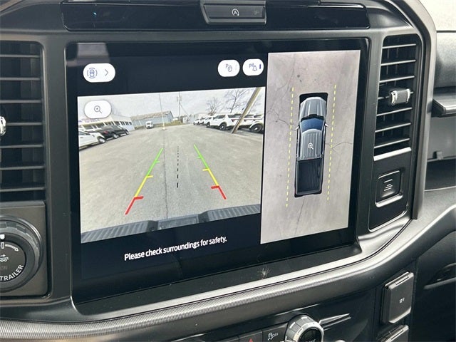 This vehicle includes the following features and options: Equipment Group 501A Mid (ActiveX Trimmed Bucket Seats, Illuminated Driver and Passenger Visors, Power-Adjustable Pedals with Memory, Power-Sliding Rear Window, Radio: B&O Sound System by Bang and Olufsen, SYNC 4 with Enhanced Voice Recognition, and Wheels: 20 Chrome-Like PVD), Ford Connectivity Package (1-Year Included), Internet access capable: 5G Modem - Ford Connectivity Package, Lariat Black Appearance Package (Black Exterior Badging, Black Grille, Black Taillamp Bezels, Body-Color Front and Rear Bumpers, Dark Interior Appliques, Gray Box Side Decal, and Matte Black Tailgate F-150 Decal), Tow/Haul Package (Integrated Trailer Brake Controller), 4WD, 4-Wheel Disc Brakes, 8 Speakers, ABS brakes, Air Conditioning, Alloy wheels, AM/FM radio: SiriusXM with 360L, Auto High-beam Headlights, Auto-dimming door mirrors, Auto-dimming Rear-View mirror, Automatic temperature control, Brake assist, Bumpers: chrome, Chrome wheels, Compass, Delay-off headlights, Driver door bin, Driver vanity mirror, Dual front impact airbags, Dual front side impact airbags, Electronic Stability Control, Emergency communication system: SYNC 4 911 Assist, Front anti-roll bar, Front Bucket Seats, Front Center Armrest, Front dual zone A/C, Front fog lights, Front License Plate Bracket, Front reading lights, Front wheel independent suspension, Fully automatic headlights, Garage door transmitter, Heated door mirrors, Heated front seats, Heated steering wheel, Illuminated entry, Low tire pressure warning, Memory seat, Navigation system: Connected Navigation, Occupant sensing airbag, Outside temperature display, Overhead airbag, Overhead console, Panic alarm, Passenger door bin, Passenger vanity mirror, Power door mirrors, Power driver seat, Power passenger seat, Power steering, Power windows, Radio data system, Rain sensing wipers, Rear reading lights, Rear seat center armrest, Rear step bumper, Rear window defroster, Remote keyless entry, Security system, Speed control, Split folding rear seat, Steering wheel mounted audio controls, Tachometer, Telescoping steering wheel, Tilt steering wheel, Traction control, Trip computer, Turn signal indicator mirrors, Twin Panel Moonroof, Variably intermittent wipers, Ventilated front seats, Wheel Well Liner, and Wheels: 18 Chrome-Like PVD.