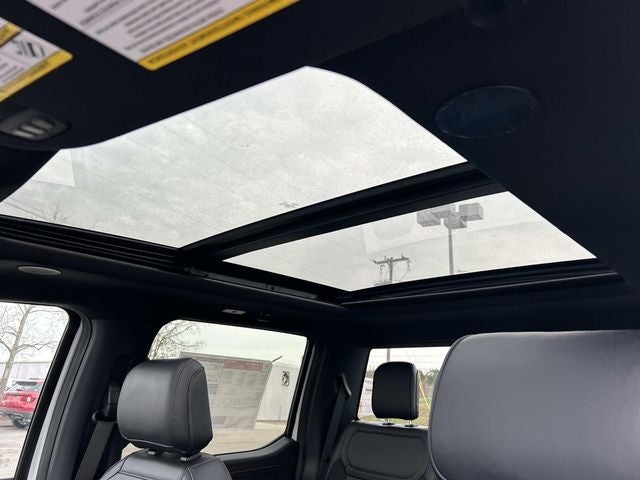 This vehicle includes the following features and options: Equipment Group 801A Standard (17 Cast Aluminum Wheels, Electronic Locking with 4.10 Axle Ratio, Leather Trimmed Seats, Radio: B&O Unleashed Sound System by Bang & Olufsen, and SYNC 4 with Enhanced Voice Recognition), Ford Connectivity Package (1-Year Included), Internet access capable: 5G Modem - Ford Connectivity Package, 4WD, 14 Speakers, 4-Wheel Disc Brakes, ABS brakes, Adjustable pedals, Air Conditioning, Alloy wheels, AM/FM radio: SiriusXM with 360L, Auto High-beam Headlights, Auto tilt-away steering wheel, Auto-dimming door mirrors, Auto-dimming Rear-View mirror, Automatic temperature control, Brake assist, Bumpers: body-color, Compass, Delay-off headlights, Driver door bin, Driver vanity mirror, Driver's Side SecuriCode Keyless-Entry Keypad, Dual front impact airbags, Dual front side impact airbags, Electronic Stability Control, Emergency communication system: SYNC 4 911 Assist, Front anti-roll bar, Front Bucket Seats, Front Center Armrest, Front dual zone A/C, Front fog lights, Front License Plate Bracket, Front reading lights, Front wheel independent suspension, Fully automatic headlights, Garage door transmitter, Hard Folding Tonneau Pickup Box Cover, Heated door mirrors, Heated front seats, Heated rear seats, Heated steering wheel, Illuminated entry, Lane Departure Warning System, Leather steering wheel, Low tire pressure warning, Memory seat, Navigation system: Connected Navigation, Occupant sensing airbag, Outside temperature display, Overhead airbag, Overhead console, Panic alarm, Passenger door bin, Passenger vanity mirror, Pedal memory, Power door mirrors, Power driver seat, Power passenger seat, Power steering, Power windows, Radio data system, Rain sensing wipers, Rear reading lights, Rear step bumper, Rear window defroster, Remote keyless entry, Security system, Speed control, Speed-sensing steering, Split folding rear seat, Steering wheel memory, Steering wheel mounted audio controls, Tachometer, Telescoping steering wheel, Tilt steering wheel, Tough Bed Spray-in Bedliner, Traction control, Trip computer, Turn signal indicator mirrors, Twin Panel Moonroof, Variably intermittent wipers, and Ventilated front seats.