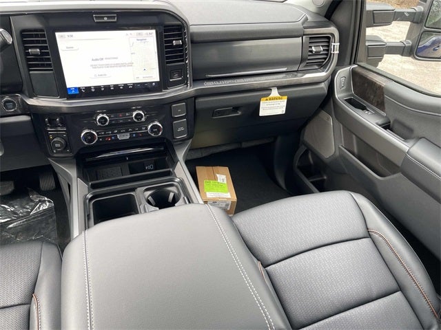 This vehicle includes the following features and options: Ford Connectivity Package (1-Year Included), GVWR: F-250 >10K Package, Internet access capable: 5G Modem - Ford Connectivity Package, Order Code 608A (Flow-Through Console, Front ActiveX Trimmed 40/Console/40 Seats, Radio: B&O Sound System by Bang and Olufsen, SiriusXM with 360L, SYNC 4 with Enhanced Voice Recognition, and Wheels: 18 Bright Machined and Carbonized Gray Aluminum), 4WD, 4-Wheel Disc Brakes, 6 Angular Bright Anodized Step Bars, 8 Speakers, ABS brakes, Adjustable pedals, Air Conditioning, Alloy wheels, AM/FM radio: SiriusXM with 360L, Auto High-beam Headlights, Auto-dimming Rear-View mirror, Automatic temperature control, BLIS with Cross-Traffic Alert, Brake assist, Bumpers: chrome, Compass, Delay-off headlights, Driver door bin, Driver vanity mirror, Dual AGM 68 AH Battery, Dual front impact airbags, Dual front side impact airbags, Electronic Stability Control, Emergency communication system: SYNC 4 911 Assist, Engine Block Heater, Front anti-roll bar, Front Bucket Seats, Front Center Armrest, Front dual zone A/C, Front fog lights, Front License Plate Bracket, Front reading lights, Fully automatic headlights, Garage door transmitter, Heated door mirrors, Heated front seats, Heated rear seats, Heated steering wheel, Illuminated entry, LED Roof Clearance Lights, Low tire pressure warning, Memory seat, Navigation system: Connected Navigation, Outside temperature display, Overhead airbag, Overhead console, Panic alarm, Passenger door bin, Passenger vanity mirror, Pedal memory, Power door mirrors, Power driver seat, Power passenger seat, Power steering, Power windows, Privacy Glass, Rain sensing wipers, Rear Parking Sensors, Rear reading lights, Rear seat center armrest, Rear step bumper, Rear window defroster, Remote keyless entry, Security system, Speed control, Split folding rear seat, Steering wheel mounted audio controls, Tachometer, Tailgate Step and Handle, Telescoping steering wheel, Tilt steering wheel, Traction control, Trip computer, Turn signal indicator mirrors, Variably intermittent wipers, and Ventilated front seats.