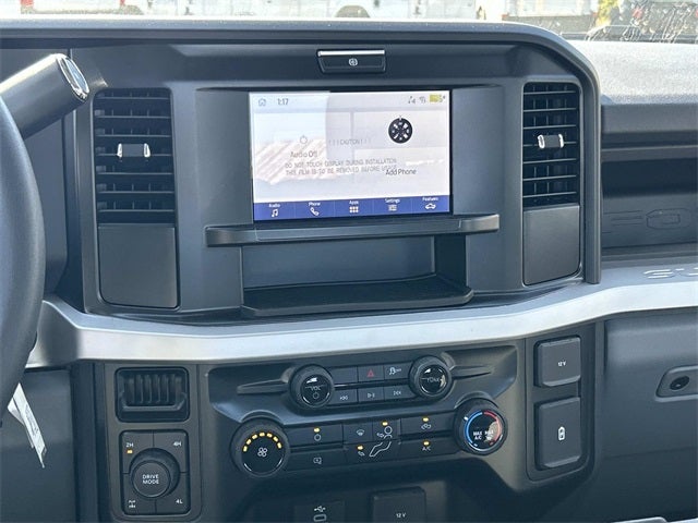 This vehicle includes the following features and options: Ford Connectivity Package (1-Year Included), GVWR: 10,000 Lb Payload Package, GVWR: F-250 >10K Package, Internet access capable: 5G Modem - Ford Connectivity Package, Order Code 600A (17 Argent Painted Steel Wheels, 3.73 Axle Ratio, HD Vinyl 40/20/40 Split Bench Seat, Radio: AM/FM Stereo with MP3 Player, and SYNC 4), XL Off-Road Package, 4WD, 4-Wheel Disc Brakes, 6 Speakers, ABS brakes, Air Conditioning, AM/FM radio, Brake assist, Compass, Delay-off headlights, Dual AGM 68 AH Battery, Dual front impact airbags, Dual front side impact airbags, Electronic Stability Control, Emergency communication system: SYNC 4 911 Assist, Engine Block Heater, Exterior Parking Camera Rear, Front anti-roll bar, Front Center Armrest w/Storage, Front License Plate Bracket, Front reading lights, Fully automatic headlights, Heated door mirrors, Illuminated entry, LED Roof Clearance Lights, Low tire pressure warning, Outside temperature display, Overhead airbag, Overhead console, Panic alarm, Passenger cancellable airbag, Passenger vanity mirror, Power door mirrors, Power steering, Power windows, Rear step bumper, Remote keyless entry, Security system, Speed control, Split folding rear seat, Steering wheel mounted audio controls, Tachometer, Telescoping steering wheel, Tilt steering wheel, Traction control, Trip computer, Turn signal indicator mirrors, and Variably intermittent wipers.