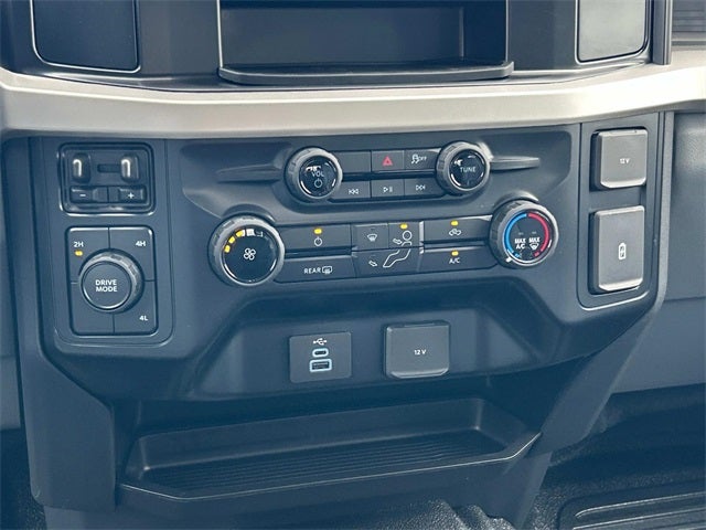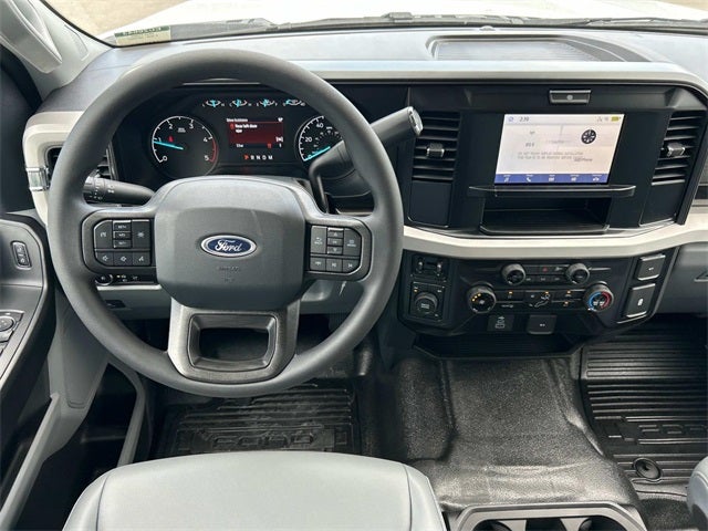 This vehicle includes the following features and options: Ford Connectivity Package (1-Year Included), GVWR: 16,500 Lb Payload Package, Internet access capable: 5G Modem - Ford Connectivity Package, Order Code 650A (HD Vinyl 40/20/40 Split Bench Seat, Radio: AM/FM Stereo with MP3 Player, SYNC 4, and Wheels: 19.5 x 6 Argent Painted Steel), XL Chrome Package (Bright Grille, Chrome Front Bumper, Halogen Fog Lamps, Privacy Glass with Power Sliding Rear Glass, Rear Window Defroster, and Remote Start), 4WD, 190 Amp Alternator, 4-Wheel Disc Brakes, 6 Speakers, ABS brakes, Air Conditioning, AM/FM radio, Brake assist, Compass, Delay-off headlights, Dual 68 AH/65 AGM Battery, Dual front impact airbags, Dual front side impact airbags, Dual rear wheels, Emergency communication system: SYNC 4 911 Assist, Engine Block Heater, Front anti-roll bar, Front Center Armrest w/Storage, Front License Plate Bracket, Front reading lights, Fully automatic headlights, Heated door mirrors, Illuminated entry, Low tire pressure warning, Outside temperature display, Overhead airbag, Overhead console, Panic alarm, Passenger vanity mirror, Platform Running Boards, Power door mirrors, Power steering, Power windows, Rear anti-roll bar, Rear reading lights, Remote keyless entry, Security system, Speed control, Split folding rear seat, Steering wheel mounted audio controls, Tachometer, Telescoping steering wheel, Tilt steering wheel, Traction control, Trailer Brake Controller, Trip computer, Turn signal indicator mirrors, and Variably intermittent wipers.
