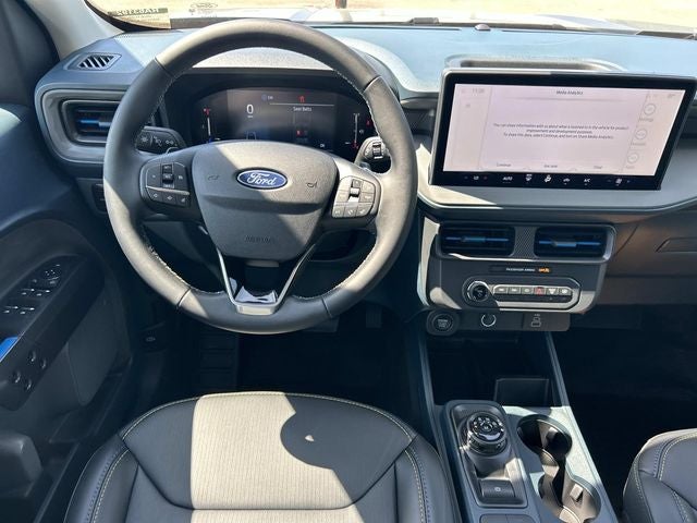 This vehicle includes the following features and options: Equipment Group 402A Standard (3.63 Axle Ratio, ActiveX Trimmed Front Bucket Seats, Radio: AM/FM Stereo with 6 Speakers, SiriusXM with 360L, SYNC 4 with Enhanced Voice Recognition, and Wheels: 19 Turbofan-Stuled Black Painted Aluminum), Ford Connectivity Package (1-Year Included), Internet access capable: 5G Modem - Ford Connectivity Package, 4-Wheel Disc Brakes, 6 Speakers, ABS brakes, Air Conditioning, Alloy wheels, AM/FM radio: SiriusXM with 360L, Apple CarPlay/Android Auto, Auto High-beam Headlights, Automatic temperature control, Brake assist, Bumpers: body-color, Compass, Delay-off headlights, Driver door bin, Driver vanity mirror, Dual front impact airbags, Dual front side impact airbags, Electronic Stability Control, Emergency communication system: SYNC 4 911 Assist, Exterior Parking Camera Rear, Four wheel independent suspension, Front anti-roll bar, Front Bucket Seats, Front Center Armrest, Front fog lights, Front reading lights, Fully automatic headlights, Illuminated entry, Knee airbag, Low tire pressure warning, Occupant sensing airbag, Outside temperature display, Overhead airbag, Overhead console, Panic alarm, Passenger door bin, Passenger vanity mirror, Power door mirrors, Power driver seat, Power steering, Power windows, Radio data system, Rear anti-roll bar, Rear Parking Sensors, Rear seat center armrest, Rear step bumper, Remote keyless entry, Security system, Speed control, Speed-sensing steering, Steering wheel mounted audio controls, Tachometer, Telescoping steering wheel, Tilt steering wheel, Traction control, and Trip computer.