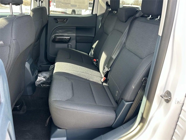 This vehicle includes the following features and options: Equipment Group 100A (Front Cloth Bucket Seats, Radio: AM/FM Stereo with 6 Speakers, SiriusXM with 360L, SYNC 4 with Enhanced Voice Recognition, and Wheels: 17 Steel with Sparkle Silver Painted Cover), Ford Connectivity Package (1-Year Included), Internet access capable: 5G Modem - Ford Connectivity Package, 2.91 Axle Ratio, 2K Trailer Hitch Receiver with 4-Pin Connector, 4-Wheel Disc Brakes, 6 Speakers, ABS brakes, Air Conditioning, AM/FM radio: SiriusXM with 360L, Apple CarPlay/Android Auto, Auto High Beams, Auto High-beam Headlights, Automatic temperature control, Brake assist, Bumpers: body-color, Compass, Delay-off headlights, Driver door bin, Driver vanity mirror, Dual front impact airbags, Dual front side impact airbags, Electronic Stability Control, Emergency communication system: SYNC 4 911 Assist, Exterior Parking Camera Rear, Front anti-roll bar, Front Bucket Seats, Front Center Armrest, Front reading lights, Front wheel independent suspension, Fully automatic headlights, Illuminated entry, Intersection Assist, Knee airbag, Lane-Keeping System, Low tire pressure warning, Occupant sensing airbag, Outside temperature display, Overhead airbag, Overhead console, Panic alarm, Passenger door bin, Passenger vanity mirror, Power steering, Power windows, Pre-Collision Assist with Automatic Emergency Braking, Radio data system, Rear anti-roll bar, Rear step bumper, Rear-View Camera, Remote keyless entry, Speed control, Speed-sensing steering, Steering wheel mounted audio controls, Telescoping steering wheel, Tilt steering wheel, Traction control, and Trip computer.