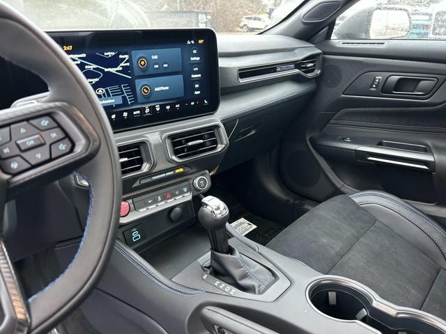 This vehicle includes the following features and options: Anti-Theft Package (Active Anti-Theft System, Locking Center Console, and Wheel Locking Kit), Equipment Group 700A Deluxe Package (Aluminum Foot Pedals, AM/FM Stereo, Approach Detection, B&O Sound System by Bang & Olufsen, Cloth/Vinyl Climate-Controlled Bucket Seats, Driver Seat Memory with 3 Settings, HD Radio, SiriusXM with 360L, SYNC 4, and Wheels: 19 x 9.5 Front & 19 x 10 Rear Aluminum), 12 Speakers, 4-Wheel Disc Brakes, ABS brakes, Adaptive suspension, Air Conditioning, Alloy wheels, AM/FM radio: SiriusXM with 360L, Auto High-beam Headlights, Auto-dimming Rear-View mirror, Automatic temperature control, Brake assist, Bumpers: body-color, Cloth/Vinyl Heated Bucket Seats, Compass, Delay-off headlights, Driver door bin, Driver vanity mirror, Dual front impact airbags, Dual front side impact airbags, Electronic Stability Control, Emergency communication system: 911 Assist, Exterior Parking Camera Rear, Four wheel independent suspension, Front anti-roll bar, Front Bucket Seats, Front Center Armrest, Front dual zone A/C, Front reading lights, Fully automatic headlights, Heated front seats, Heated steering wheel, Hood Accent Stripe Delete, Illuminated entry, Knee airbag, Low tire pressure warning, Navigation system: Connected Navigation, Occupant sensing airbag, Outside temperature display, Overhead airbag, Overhead console, Panic alarm, Passenger door bin, Passenger vanity mirror, Power door mirrors, Power driver seat, Power passenger seat, Power steering, Power windows, Premium Floor Liners Front and Rear (with Carpet Mats), Radio data system, Rain sensing wipers, Rear anti-roll bar, Rear Parking Sensors, Rear window defroster, Remote keyless entry, Speed control, Speed-sensing steering, Speed-Sensitive Wipers, Split folding rear seat, Spoiler, Sport steering wheel, Steering wheel mounted audio controls, Tachometer, Telescoping steering wheel, Tilt steering wheel, Traction control, Trip computer, Variably intermittent wipers, and Voltmeter.