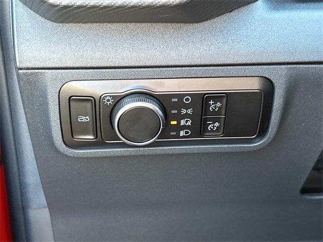 This vehicle includes the following features and options: 1st Row Carpeted Black Floor Mats, 4-Wheel Disc Brakes, ABS brakes, Air Conditioning, Alloy wheels, AM/FM Stereo, Auto High-beam Headlights, Automatic temperature control, Brake assist, Bumpers: body-color, Compass, Delay-off headlights, Driver door bin, Driver vanity mirror, Dual front impact airbags, Dual front side impact airbags, Electronic Stability Control, Emergency communication system: 911 Assist, Exterior Parking Camera Rear, Four wheel independent suspension, Front anti-roll bar, Front Bucket Seats, Front Center Armrest, Front dual zone A/C, Front reading lights, Fully automatic headlights, Illuminated entry, Knee airbag, Leather Shift Knob, Low tire pressure warning, Occupant sensing airbag, Outside temperature display, Overhead airbag, Overhead console, Panic alarm, Passenger door bin, Passenger vanity mirror, Power door mirrors, Power steering, Power windows, Radio data system, Rain sensing wipers, Rear anti-roll bar, Rear Parking Sensors, Rear window defroster, Remote keyless entry, Speed control, Speed-sensing steering, Speed-Sensitive Wipers, Split folding rear seat, Sport steering wheel, Steering wheel mounted audio controls, SYNC 4, Tachometer, Telescoping steering wheel, Tilt steering wheel, Traction control, Trip computer, Variably intermittent wipers, Voltmeter, Wedge Decklid Spoiler, and Wheels: 18 x 8 Painted Shadow Silver Cast Aluminum.
