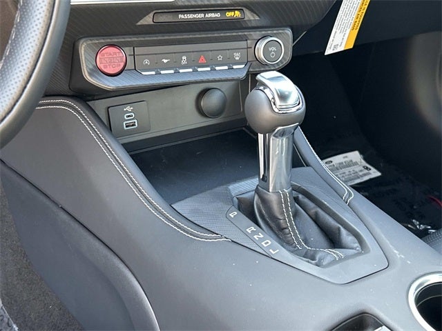 This vehicle includes the following features and options: 1st Row Carpeted Black Floor Mats, 4-Wheel Disc Brakes, 9 Speakers, ABS brakes, Active Anti-Theft System, Air Conditioning, Alloy wheels, AM/FM radio: SiriusXM with 360L, AM/FM Stereo, Auto High-beam Headlights, Automatic temperature control, Brake assist, Bumpers: body-color, Compass, Convertible roof lining, Delay-off headlights, Driver door bin, Driver vanity mirror, Dual front impact airbags, Dual front side impact airbags, Electronic Stability Control, Emergency communication system: 911 Assist, Exterior Parking Camera Rear, Four wheel independent suspension, Front anti-roll bar, Front Bucket Seats, Front Center Armrest, Front dual zone A/C, Front reading lights, Fully automatic headlights, Glass rear window, Heated front seats, Illuminated entry, Knee airbag, Leather Shift Knob, Low tire pressure warning, Occupant sensing airbag, Outside temperature display, Overhead console, Panic alarm, Passenger door bin, Passenger vanity mirror, Perimeter Alarm, Power convertible roof, Power door mirrors, Power driver seat, Power steering, Power windows, Radio data system, Rain sensing wipers, Rear anti-roll bar, Rear Parking Sensors, Rear window defroster, Remote keyless entry, Security system, Speed control, Speed-sensing steering, Speed-Sensitive Wipers, Sport steering wheel, Steering wheel mounted audio controls, SYNC 4, Tachometer, Telescoping steering wheel, Tilt steering wheel, Traction control, Trip computer, Variably intermittent wipers, Voltmeter, and Wheels: 18 x 8 Painted Shadow Silver Cast Aluminum.