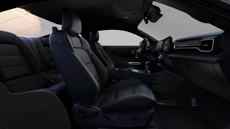 This vehicle includes the following features and options: Anti-Theft Package (Active Anti-Theft System, Locking Center Console, and Wheel Locking Kit), Equipment Group 401A High Package (Aluminum Foot Pedals, AM/FM Stereo, Driver Seat Memory with 3 Settings, HD Radio, Leather-Trimmed Bucket Seats with Color Accents, Magnesium Framed Panoramic Curved Display, Perimeter Alarm, SiriusXM with 360L, SYNC 4, and Wheels: 19 x 8.5 Shadow Silver-Painted Aluminum), Ford Co-Pilot360 Assist+ (One-Year Connected Navigation and Pre-Collision Assist with Automatic Emergency Braking), Ford Connectivity Package (one-Time Purchase - 7 Years), 1st Row Carpeted Black Floor Mats, 3.55 Limited Slip Rear Axle, 4-Wheel Disc Brakes, 9 Speakers, ABS brakes, Active Valve Performance Exhaust, ActiveX Trimmed Bucket Seats, Air Conditioning, Alloy wheels, AM/FM radio: SiriusXM with 360L, Auto High-beam Headlights, Auto-dimming Rear-View mirror, Automatic temperature control, Brake assist, Bumpers: body-color, Climate Controlled Heated/Cooled Front Seats, Compass, Delay-off headlights, Driver door bin, Driver vanity mirror, Dual front impact airbags, Dual front side impact airbags, Electronic Stability Control, Emergency communication system: 911 Assist, Exterior Parking Camera Rear, Four wheel independent suspension, Front anti-roll bar, Front Bucket Seats, Front Center Armrest, Front dual zone A/C, Front reading lights, Fully automatic headlights, Heated front seats, Heated steering wheel, Illuminated entry, Instrument Panel with Accent Stitch, Knee airbag, Leather Shift Knob, Leather steering wheel, Low tire pressure warning, Occupant sensing airbag, Outside temperature display, Overhead airbag, Overhead console, Panic alarm, Passenger door bin, Passenger vanity mirror, Power door mirrors, Power driver seat, Power passenger seat, Power steering, Power windows, Premium Floor Liners Front and Rear (with Carpet Mats), Radio data system, Rain sensing wipers, Rear anti-roll bar, Rear Parking Sensors, Rear window defroster, Remote keyless entry, Speed control, Speed-sensing steering, Speed-Sensitive Wipers, Split folding rear seat, Sport steering wheel, Steering wheel mounted audio controls, Tachometer, Telescoping steering wheel, Tilt steering wheel, Traction control, Trip computer, Variably intermittent wipers, Ventilated front seats, Voltmeter, Wedge Decklid Spoiler, and Wheels: 20 x 9 Premium-Painted Aluminum.