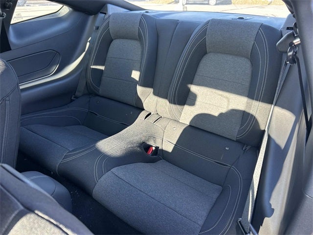 This vehicle includes the following features and options: Equipment Group 300A Standard Package (AM/FM Stereo, Cloth Bucket Seats, SYNC 4, and Wheels: 8 x 8.5 Ebony Black Painted Aluminum), Ford Connectivity Package (one-Time Purchase - 7 Years), 1st Row Carpeted Black Floor Mats, 3.55 Limited Slip Rear Axle, 4-Wheel Disc Brakes, 6 Speakers, ABS brakes, Active Valve Performance Exhaust, Air Conditioning, Alloy wheels, AM/FM radio, Auto High-beam Headlights, Automatic temperature control, Brake assist, Bumpers: body-color, Compass, Delay-off headlights, Driver door bin, Driver vanity mirror, Dual front impact airbags, Dual front side impact airbags, Electronic Stability Control, Emergency communication system: 911 Assist, Exterior Parking Camera Rear, Four wheel independent suspension, Front anti-roll bar, Front Bucket Seats, Front Center Armrest, Front dual zone A/C, Front reading lights, Fully automatic headlights, Illuminated entry, Knee airbag, Leather Shift Knob, Leather steering wheel, Low tire pressure warning, Occupant sensing airbag, Outside temperature display, Overhead airbag, Overhead console, Panic alarm, Passenger door bin, Passenger vanity mirror, Power door mirrors, Power steering, Power windows, Premium Floor Liners Front and Rear (with Carpet Mats), Radio data system, Rain sensing wipers, Rear anti-roll bar, Rear Parking Sensors, Rear window defroster, Remote keyless entry, Speed control, Speed-sensing steering, Speed-Sensitive Wipers, Split folding rear seat, Sport steering wheel, Steering wheel mounted audio controls, Tachometer, Telescoping steering wheel, Tilt steering wheel, Traction control, Trip computer, Variably intermittent wipers, Voltmeter, and Wedge Decklid Spoiler.