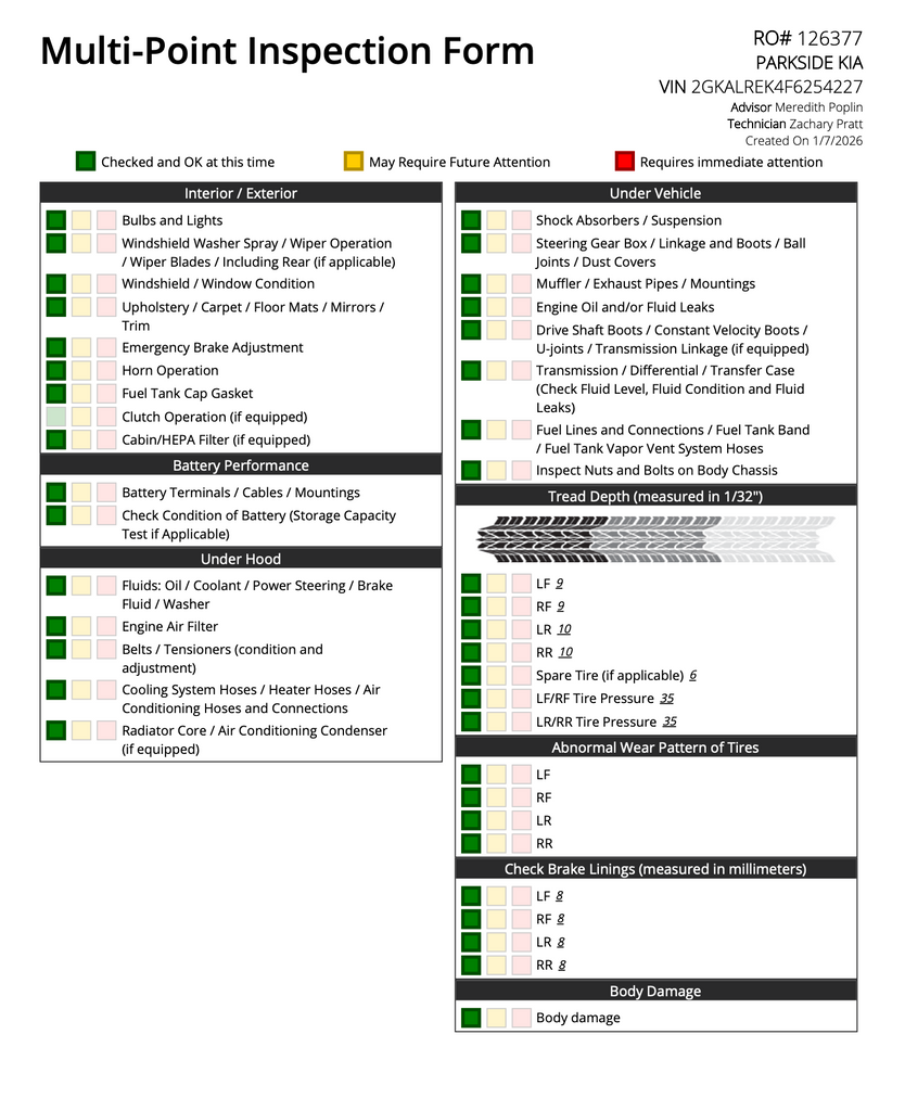 - *Recent Oil Change*