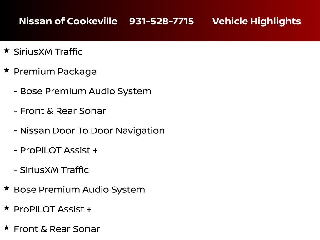 - NissanConnect featuring Apple CarPlay and Android Auto