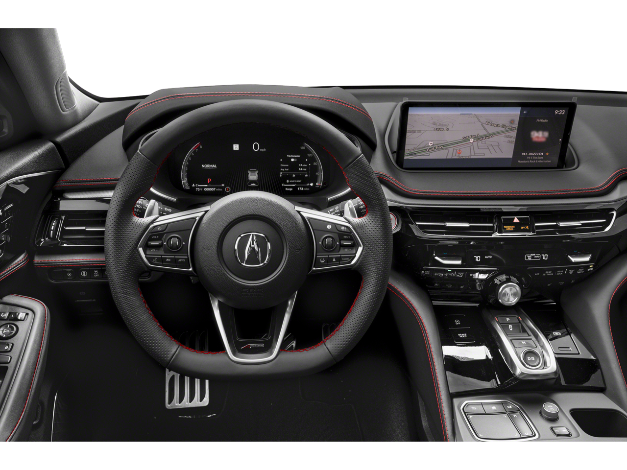 This vehicle includes the following features and options: MDX A-Spec SH-AWD, Ford Blue Advantage: Blue Certified Certified, AWD, Ebony w/Leatherette Trimmed Seats, Navigation system: Acura Navigation System with 3D View, 16 Speakers, 3rd row seats: split-bench, 4-Wheel Disc Brakes, 4.17 Axle Ratio, A/V remote: CabinControl, ABS brakes, Air Conditioning, Alloy wheels, AM/FM radio: SiriusXM, Anti-whiplash front head restraints, Apple CarPlay/Android Auto, Audio memory, Auto High-beam Headlights, Auto tilt-away steering wheel, Auto-dimming Rear-View mirror, Automatic temperature control, Brake assist, Bumpers: body-color, Compass, Delay-off headlights, Driver door bin, Driver vanity mirror, Dual front impact airbags, Dual front side impact airbags, Electronic Stability Control, Emergency communication system: AcuraLink, Exterior Parking Camera Rear, Four wheel independent suspension, Front anti-roll bar, Front Bucket Seats, Front Center Armrest, Front dual zone A/C, Front fog lights, Front reading lights, Fully automatic headlights, Garage door transmitter: HomeLink, Heated & Ventilated A-Spec Front Sport Seats, Heated door mirrors, Heated front seats, HVAC memory, Illuminated entry, Knee airbag, Lane departure: Lane Keeping Assist System (LKAS) active, Leather steering wheel, Low tire pressure warning, Memory seat, Occupant sensing airbag, Outside temperature display, Overhead airbag, Overhead console, Panic alarm, Passenger door bin, Passenger vanity mirror, Perforated Milano Leather & Ultrasuede, Power door mirrors, Power driver seat, Power Liftgate, Power moonroof, Power passenger seat, Power steering, Power windows, Premium audio system: Acura/ELS Studio 3D, Radio data system, Radio: ELS Studio 3D Premium Audio System, Rain sensing wipers, Rear air conditioning, Rear anti-roll bar, Rear reading lights, Rear seat center armrest, Rear window defroster, Rear window wiper, Remote keyless entry, Security system, Speed control, Speed-sensing steering, Speed-Sensitive Wipers, Split folding rear seat, Spoiler, Sport steering wheel, Steering wheel memory, Steering wheel mounted audio controls, Tachometer, Telescoping steering wheel, Tilt steering wheel, Traction control, Trip computer, Turn signal indicator mirrors, Variably intermittent wipers, Ventilated front seats, and Wheels: 20 x 9 Aluminum Alloy.
