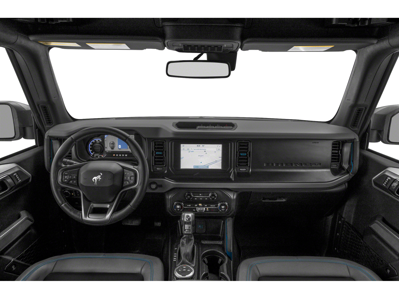 This vehicle includes the following features and options: Equipment Group 322A Mid Package (2-Door Intelligent Access w/Lock/Unlock, Ambient Footwell Lighting, Auto-Dimming Interior Rear-View Mirror, Connected Navigation, Dr & Pass Illuminated Sliding Visor Vanity Mirrors, Dual-Zone Electronic Automatic Temperature Control, Enhanced Voice Recognition, Front Row Heated Seats, Power Outlet - Back Side of Center Floor Console, Rear Parking Sensors, and Remote Start System), Ford Blue Advantage: Blue Certified Certified, 4WD, 4-Wheel Disc Brakes, 4.46 Axle Ratio, 7 Speakers, ABS brakes, Air Conditioning, AM/FM radio: SiriusXM with 360L, AM/FM Stereo, Auto High-beam Headlights, Brake assist, Cargo Area Rug (DIO), Compass, Delay-off headlights, Driver door bin, Driver vanity mirror, Dual front impact airbags, Dual front side impact airbags, Electronic Stability Control, Emergency communication system: 911 Assist, Exterior Parking Camera Rear, Front & Rear Floor Liners w/o Carpet Floor Mats, Front anti-roll bar, Front Bucket Seats, Front Center Armrest, Front reading lights, Front wheel independent suspension, Fully automatic headlights, Heated door mirrors, Illuminated entry, Integrated roll-over protection, Leather Shift Knob, Low tire pressure warning, Marine Grade Vinyl Bucket Seats, Navigation Removal, Occupant sensing airbag, Outside temperature display, Overhead airbag, Overhead console, Panic alarm, Passenger door bin, Passenger vanity mirror, Power door mirrors, Power steering, Power windows, Radio data system, Radio: 6 Speakers w/Subwoofer Delete, Remote keyless entry, Removable Hoop Step, Security system, SiriusXM Radio w/360L, Speed control, Split folding rear seat, Steering wheel mounted audio controls, SYNC 4, Tachometer, Telescoping steering wheel, Tilt steering wheel, Traction control, Trip computer, Variably intermittent wipers, Wheel Lock Kit (DIO), Wheels: 17 Black Gloss-Painted Steel, and Wheels: 17 Black High Gloss-Painted Aluminum (64H).