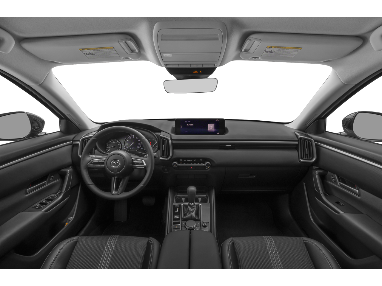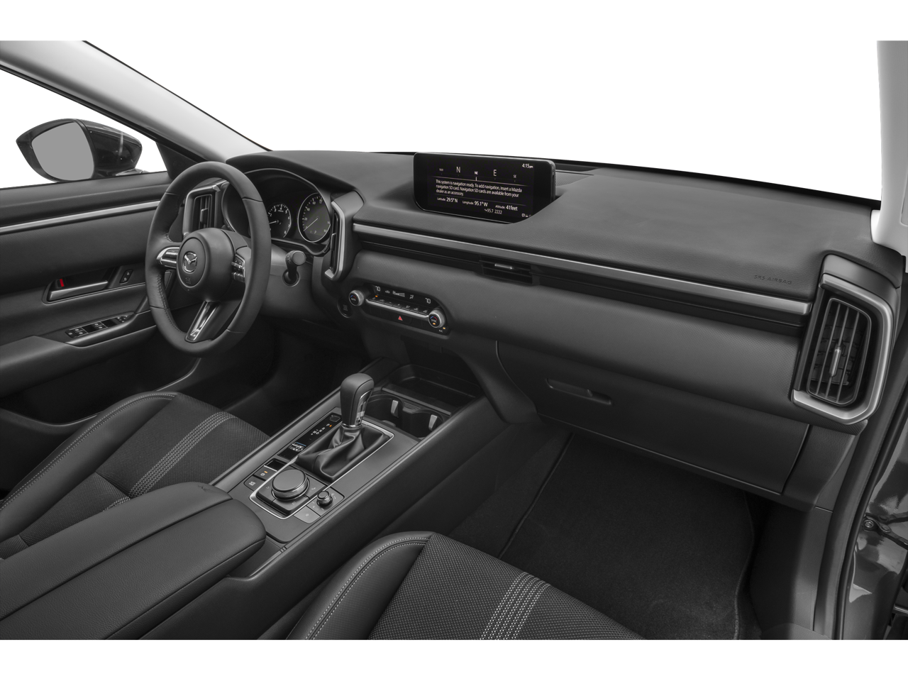 This vehicle includes the following features and options: Cargo Package (Cargo Blocks), Convenience Package (Frameless Auto-Dimming Rearview Mirror w/HomeLink and Wireless Charging Pad), 4-Wheel Disc Brakes, 4.367 Axle Ratio, 8 Speakers, ABS brakes, Air Conditioning, Alloy wheels, AM/FM radio, AppLink/Apple CarPlay and Android Auto, Auto High-beam Headlights, Automatic temperature control, Brake assist, Bumpers: body-color, Delay-off headlights, Driver door bin, Driver vanity mirror, Dual front impact airbags, Dual front side impact airbags, Electronic Stability Control, Emergency communication system: MAZDA CONNECT, Exterior Parking Camera Rear, Front anti-roll bar, Front Bucket Seats, Front Center Armrest, Front dual zone A/C, Front reading lights, Front wheel independent suspension, Fully automatic headlights, Half Leatherette Seat Trim, Illuminated entry, Knee airbag, Leather Shift Knob, Leather steering wheel, Low tire pressure warning, Machine Gray Metallic Paint Charge, Occupant sensing airbag, Outside temperature display, Overhead airbag, Overhead console, Panic alarm, Passenger door bin, Passenger vanity mirror, Power door mirrors, Power steering, Power windows, Radio data system, Radio: AM/FM/HD Audio System, Rain sensing wipers, Rear seat center armrest, Rear window defroster, Rear window wiper, Remote keyless entry, Speed control, Speed-sensing steering, Split folding rear seat, Spoiler, Steering wheel mounted audio controls, Tachometer, Telescoping steering wheel, Tilt steering wheel, Traction control, Trip computer, Turn signal indicator mirrors, Variably intermittent wipers, and Wheels: 17 x 7J Aluminum Alloy.